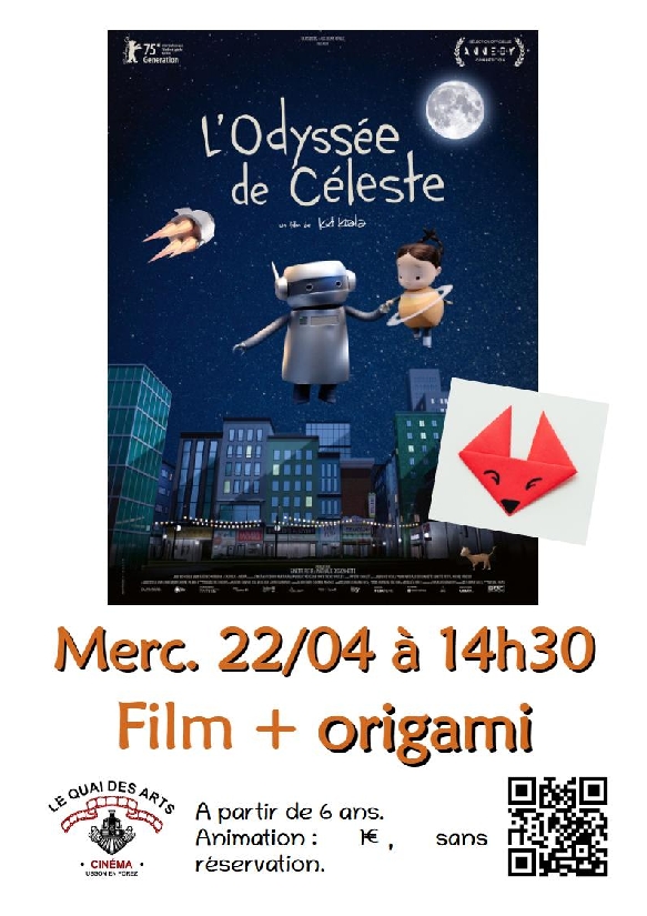 | L’Odyssée de Céleste + origamiDu mercredi 22 avril à 14h30 au mercredi 22 avril à 17h00 |  | La séance sera suivie d’une animation origami !