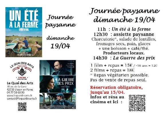 | Journée Paysanne : 2 films + repasDu dimanche 19 avril à 11h00 au dimanche 19 avril à 16h30 |  | JOURNEE PAYSANNE